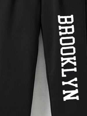 Black Printed Regular Fit Polyester Trouser