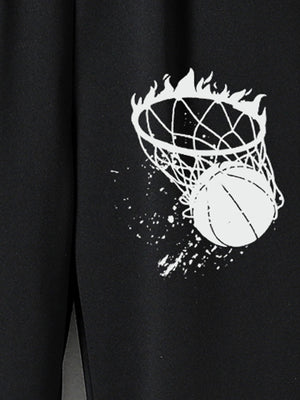 Black Printed Regular Fit Polyester Trouser
