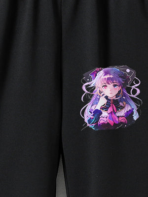 Black Printed Regular Fit Polyester Trouser