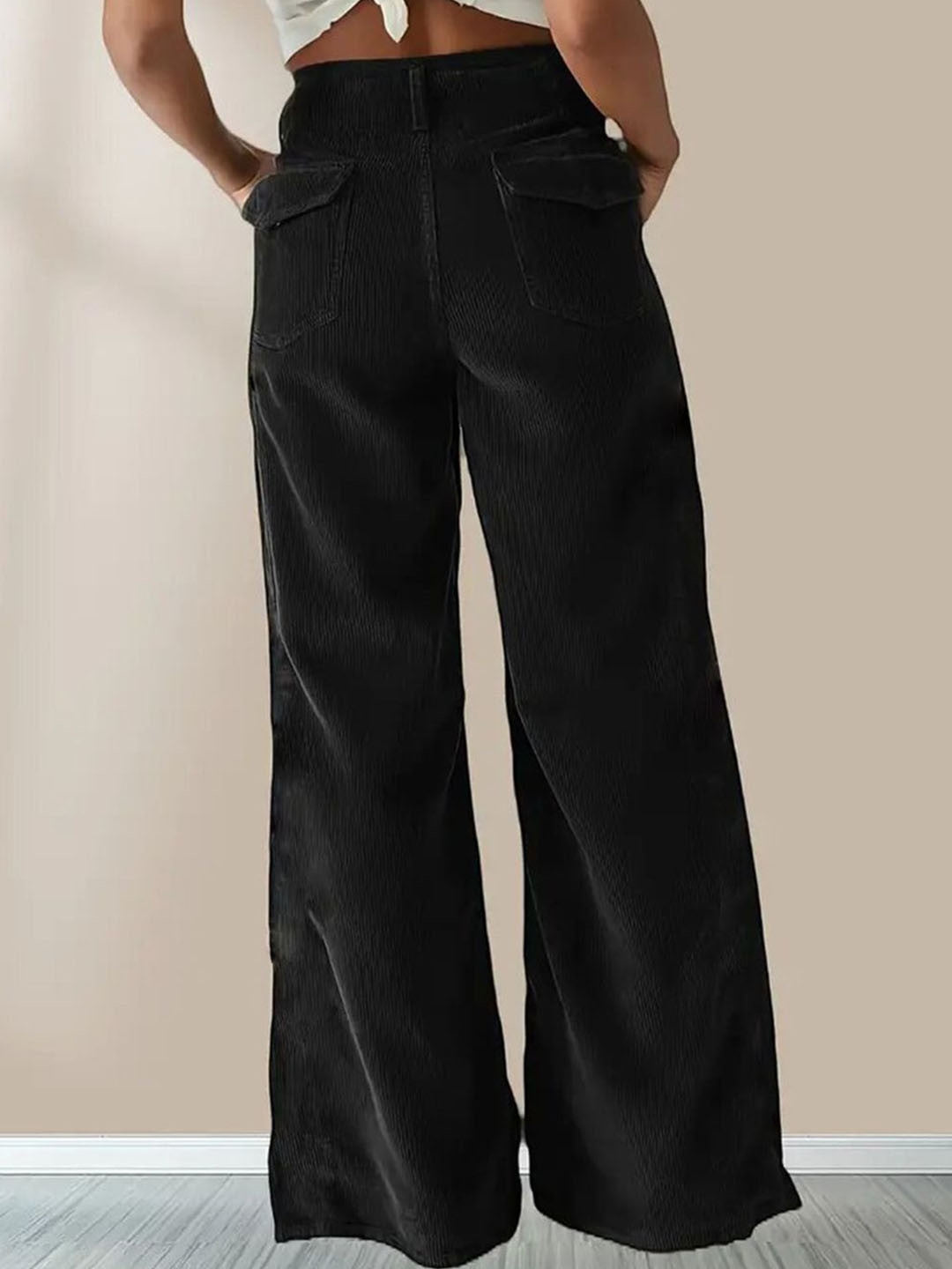 Black Relaxed Fit Solid Polyester Trouser