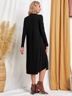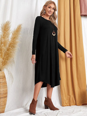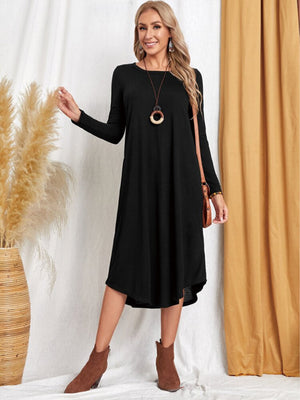 Black Round Neck A-Line Party Solid Long Sleeves Maxi Polyester Dress
