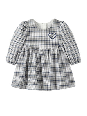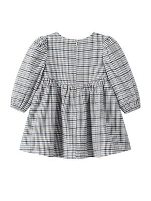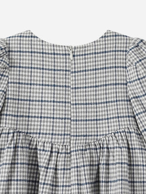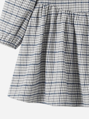 Black Round Neck Casual A-Line Checked Long Sleeves Knee Length Cotton Dress