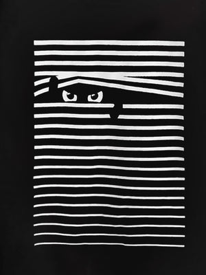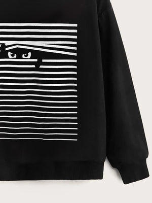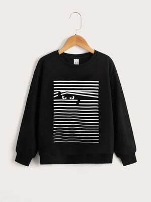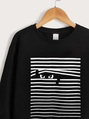 Black Round Neck Graphics Printed Long Sleeves Polyester Sweatshirt