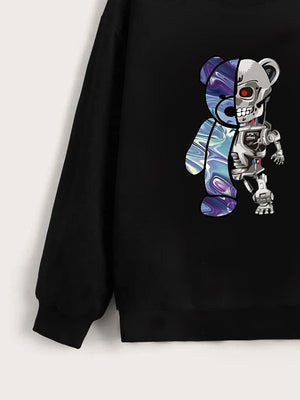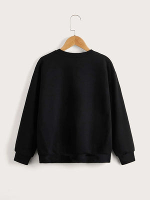 Black Round Neck Graphics Printed Long Sleeves Polyester Sweatshirt