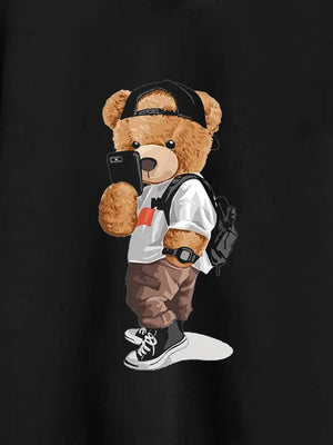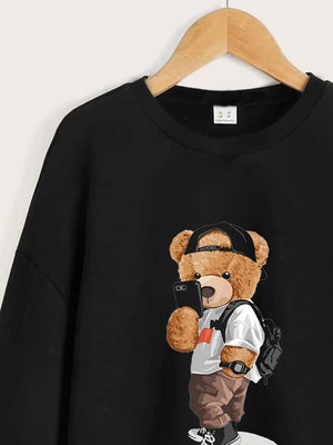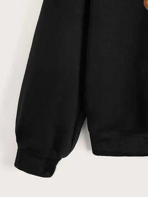 Black Round Neck Graphics Printed Long Sleeves Polyester Sweatshirt