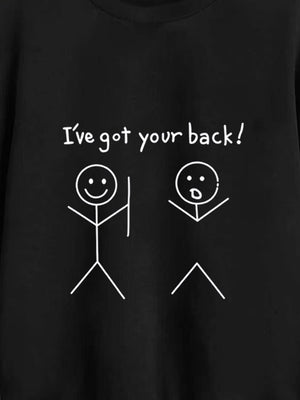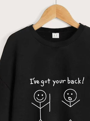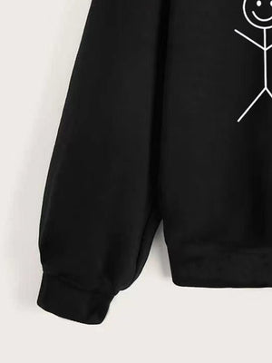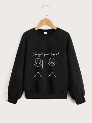 Black Round Neck Graphics Printed Long Sleeves Polyester Sweatshirt