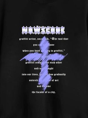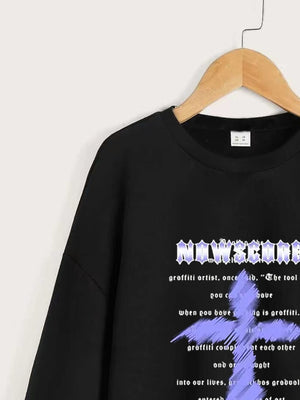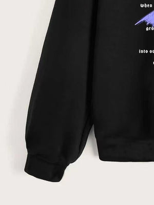 Black Round Neck Graphics Printed Long Sleeves Polyester Sweatshirt