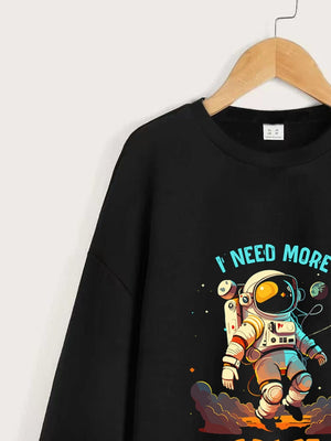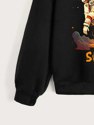 Black Round Neck Graphics Printed Long Sleeves Polyester Sweatshirt