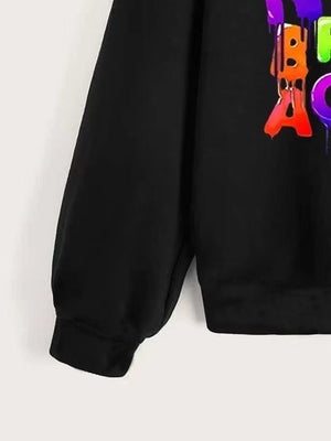 Black Round Neck Graphics Printed Long Sleeves Polyester Sweatshirt