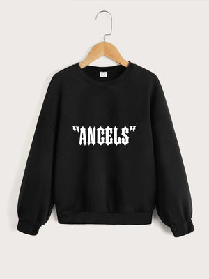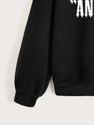 Black Round Neck Graphics Printed Long Sleeves Polyester Sweatshirt