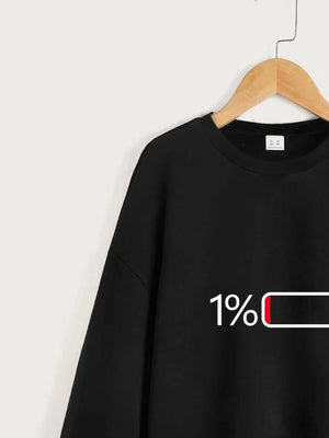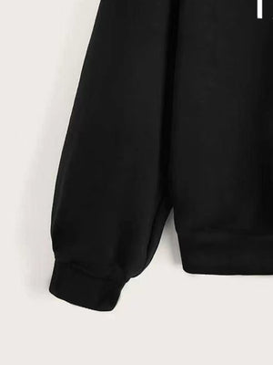 Black Round Neck Graphics Printed Long Sleeves Polyester Sweatshirt