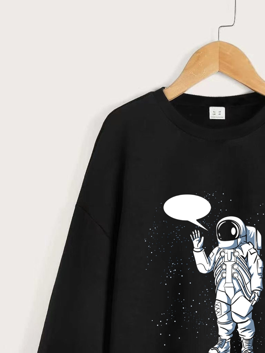 Black Round Neck Graphics Printed Long Sleeves Polyester Sweatshirt