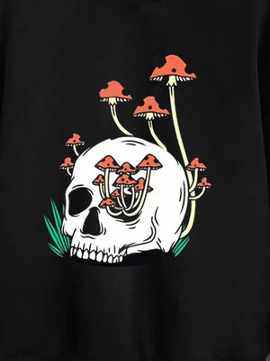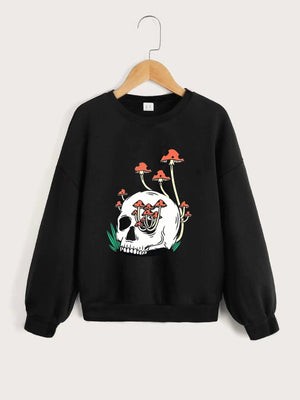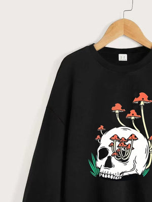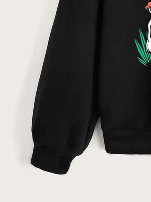 Black Round Neck Graphics Printed Long Sleeves Polyester Sweatshirt