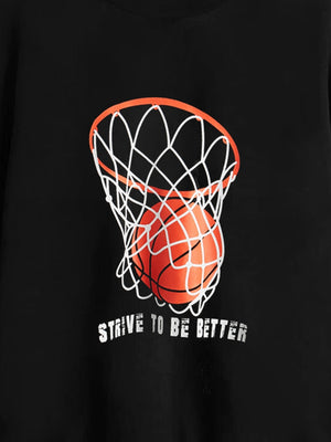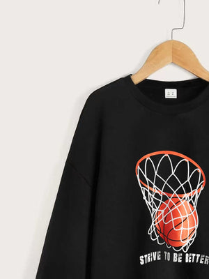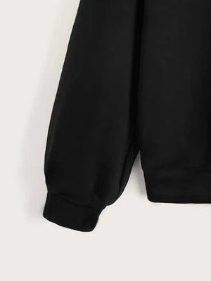 Black Round Neck Graphics Printed Long Sleeves Polyester Sweatshirt