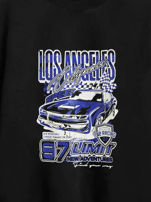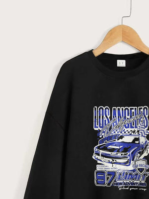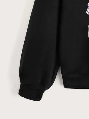 Black Round Neck Graphics Printed Long Sleeves Polyester Sweatshirt