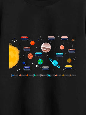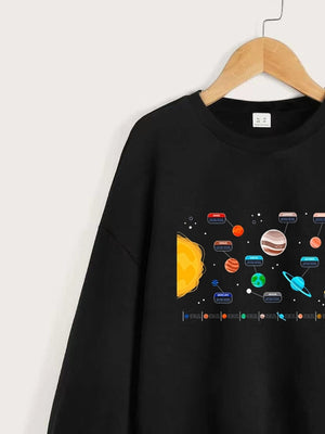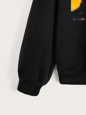 Black Round Neck Graphics Printed Long Sleeves Polyester Sweatshirt