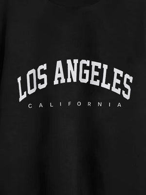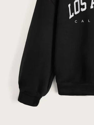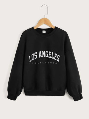 Black Round Neck Graphics Printed Long Sleeves Polyester Sweatshirt