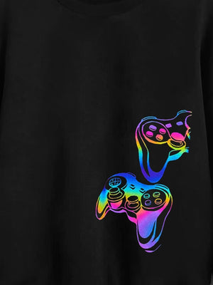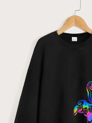 Black Round Neck Graphics Printed Long Sleeves Polyester Sweatshirt