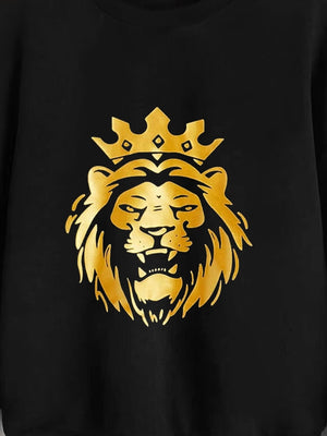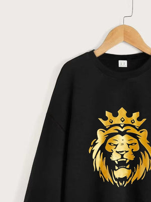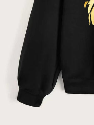 Black Round Neck Graphics Printed Long Sleeves Polyester Sweatshirt