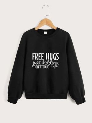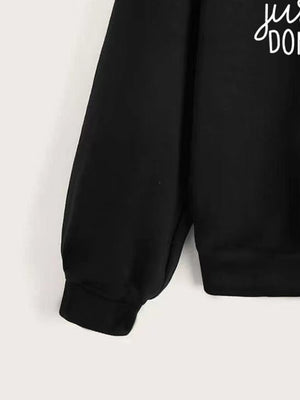 Black Round Neck Graphics Printed Long Sleeves Polyester Sweatshirt