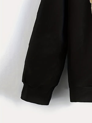 Black Round Neck Graphics Printed Long Sleeves Polyester Sweatshirt