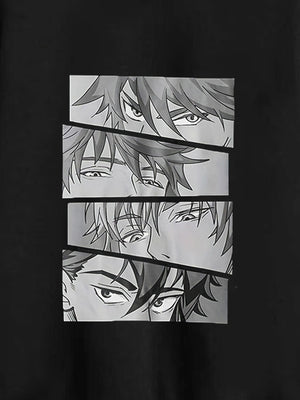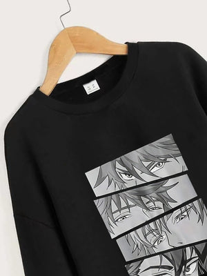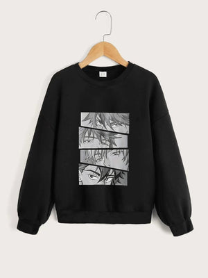 Black Round Neck Graphics Printed Long Sleeves Polyester Sweatshirt