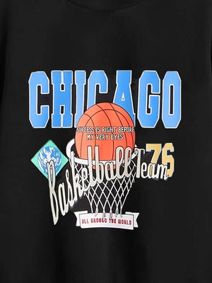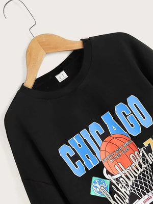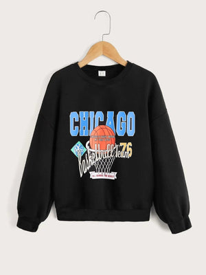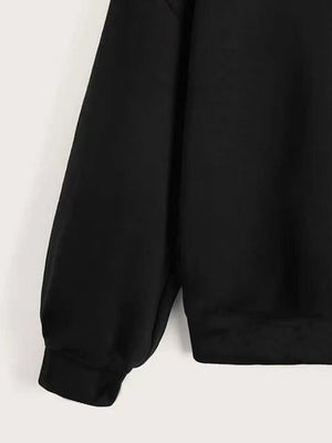 Black Round Neck Graphics Printed Long Sleeves Polyester Sweatshirt