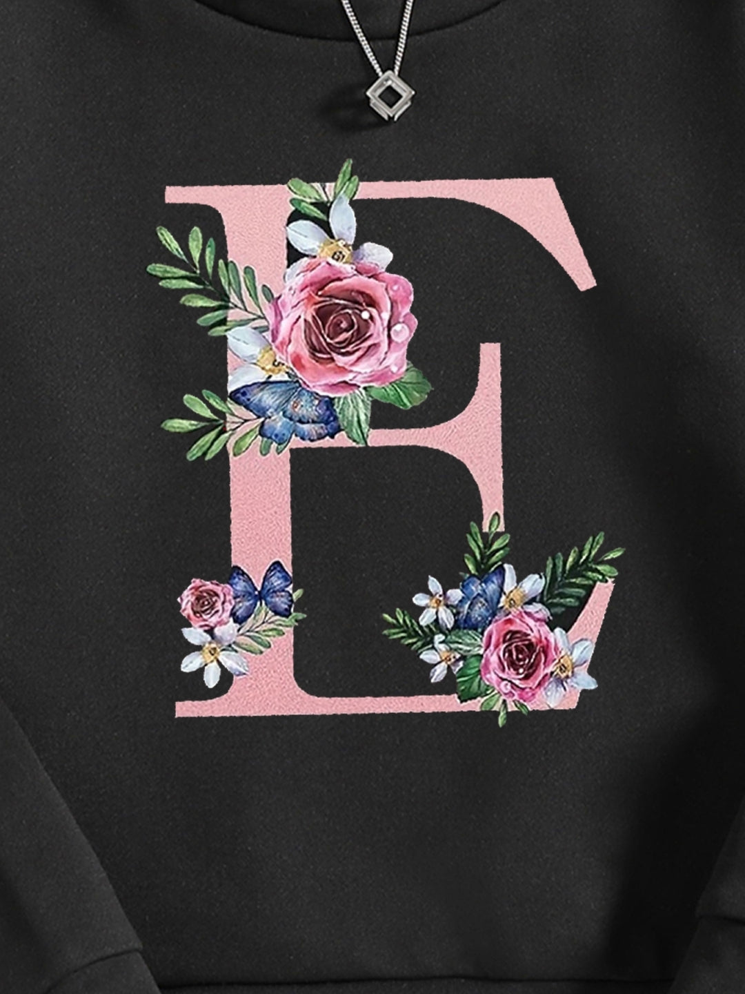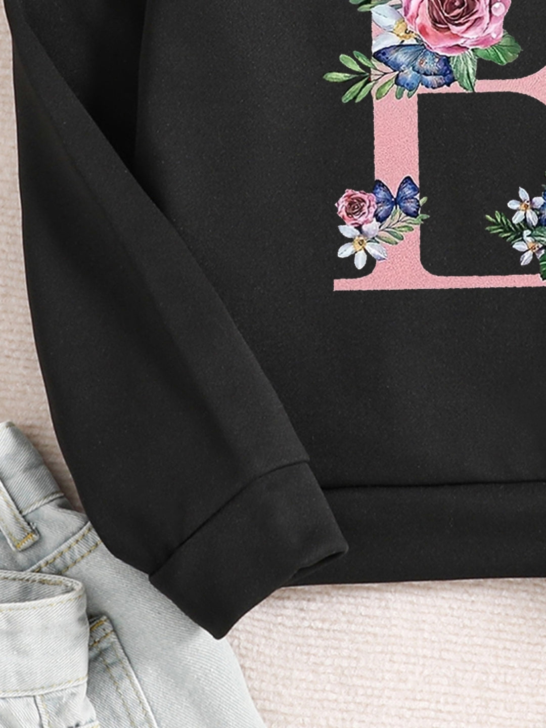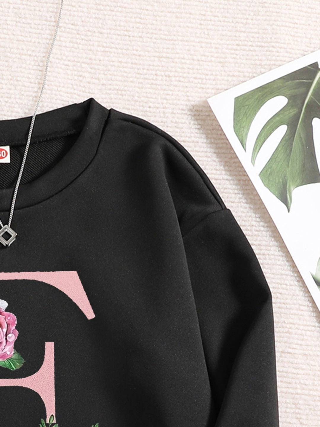 Black Round Neck Graphics Printed Long Sleeves Polyester Sweatshirt
