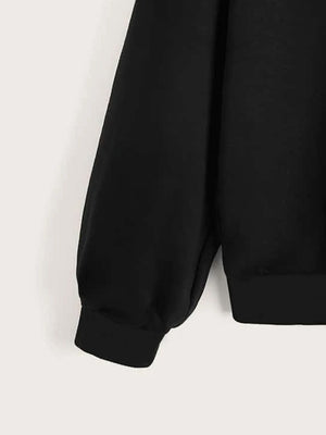 Black Round Neck Graphics Printed Long Sleeves Polyester Sweatshirt