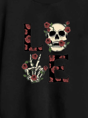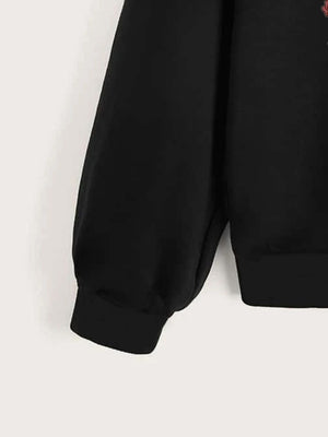 Black Round Neck Graphics Printed Long Sleeves Polyester Sweatshirt