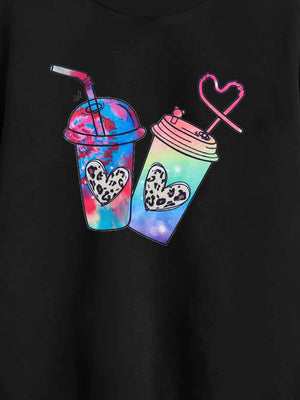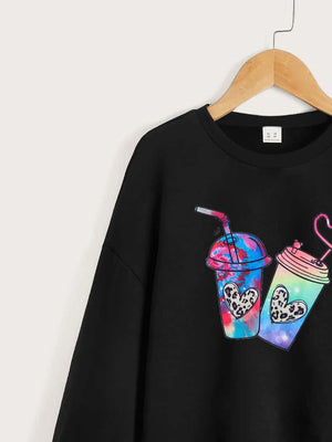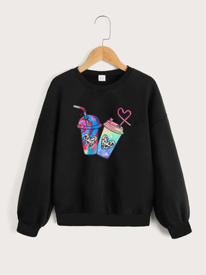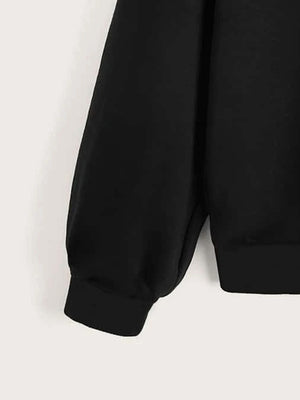 Black Round Neck Graphics Printed Long Sleeves Polyester Sweatshirt