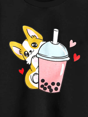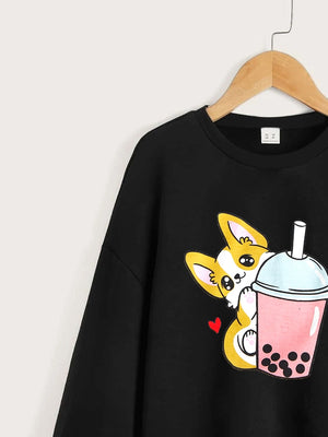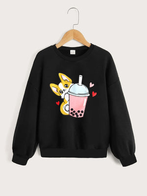 Black Round Neck Graphics Printed Long Sleeves Polyester Sweatshirt
