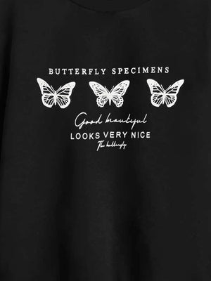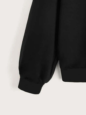 Black Round Neck Graphics Printed Long Sleeves Polyester Sweatshirt