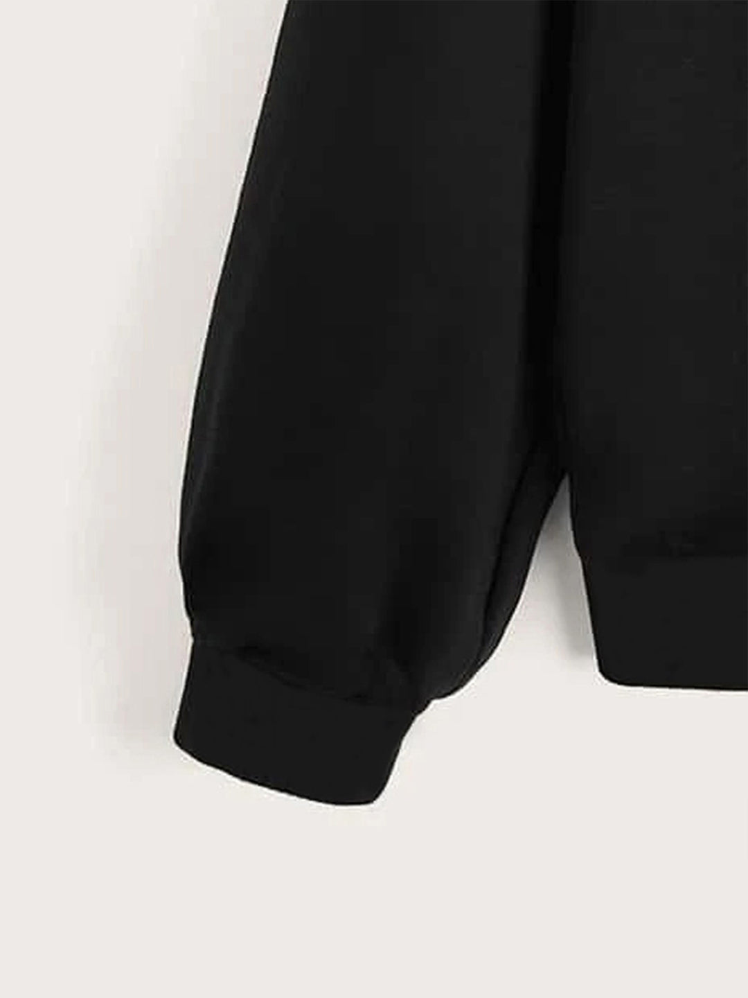 Black Round Neck Graphics Printed Long Sleeves Polyester Sweatshirt