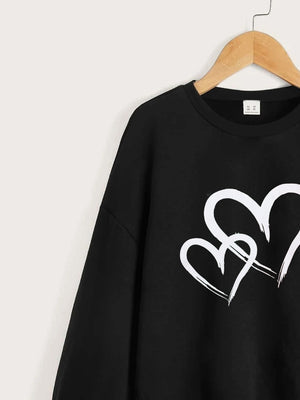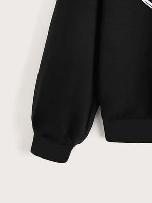 Black Round Neck Graphics Printed Long Sleeves Polyester Sweatshirt