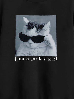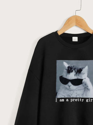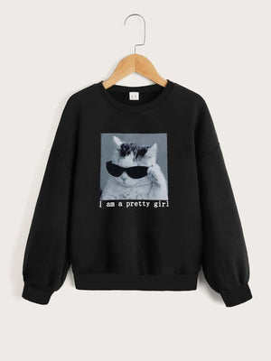 Black Round Neck Graphics Printed Long Sleeves Polyester Sweatshirt
