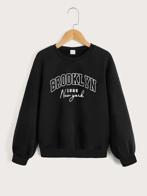 Black Round Neck Graphics Printed Long Sleeves Polyester Sweatshirt