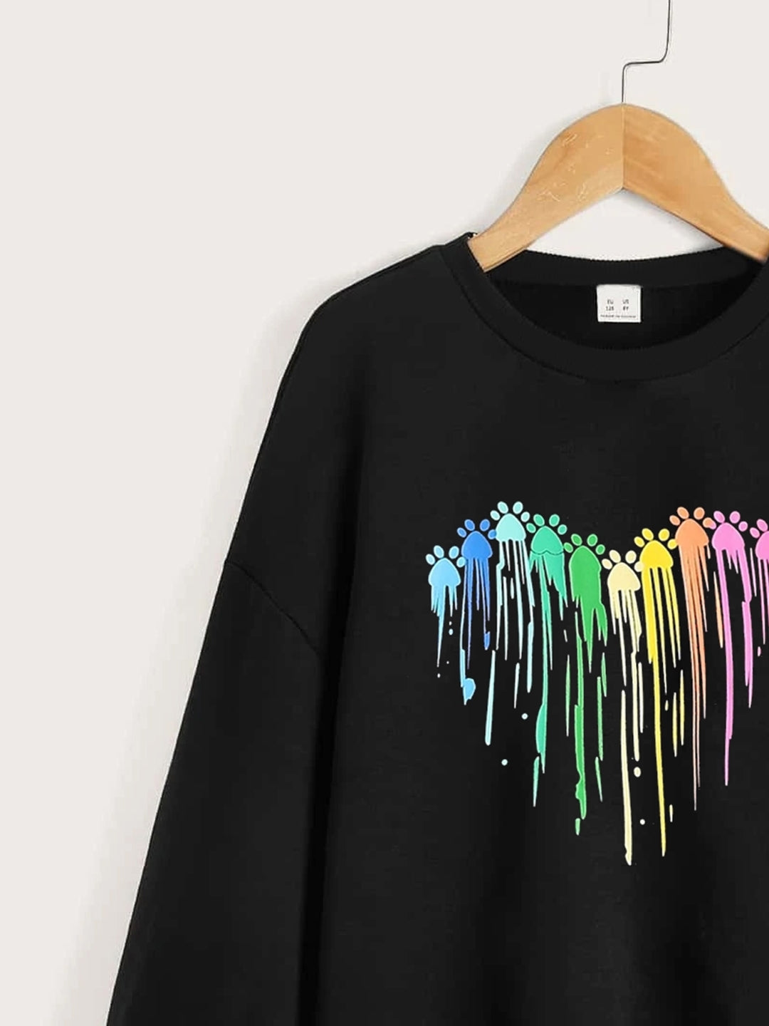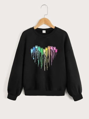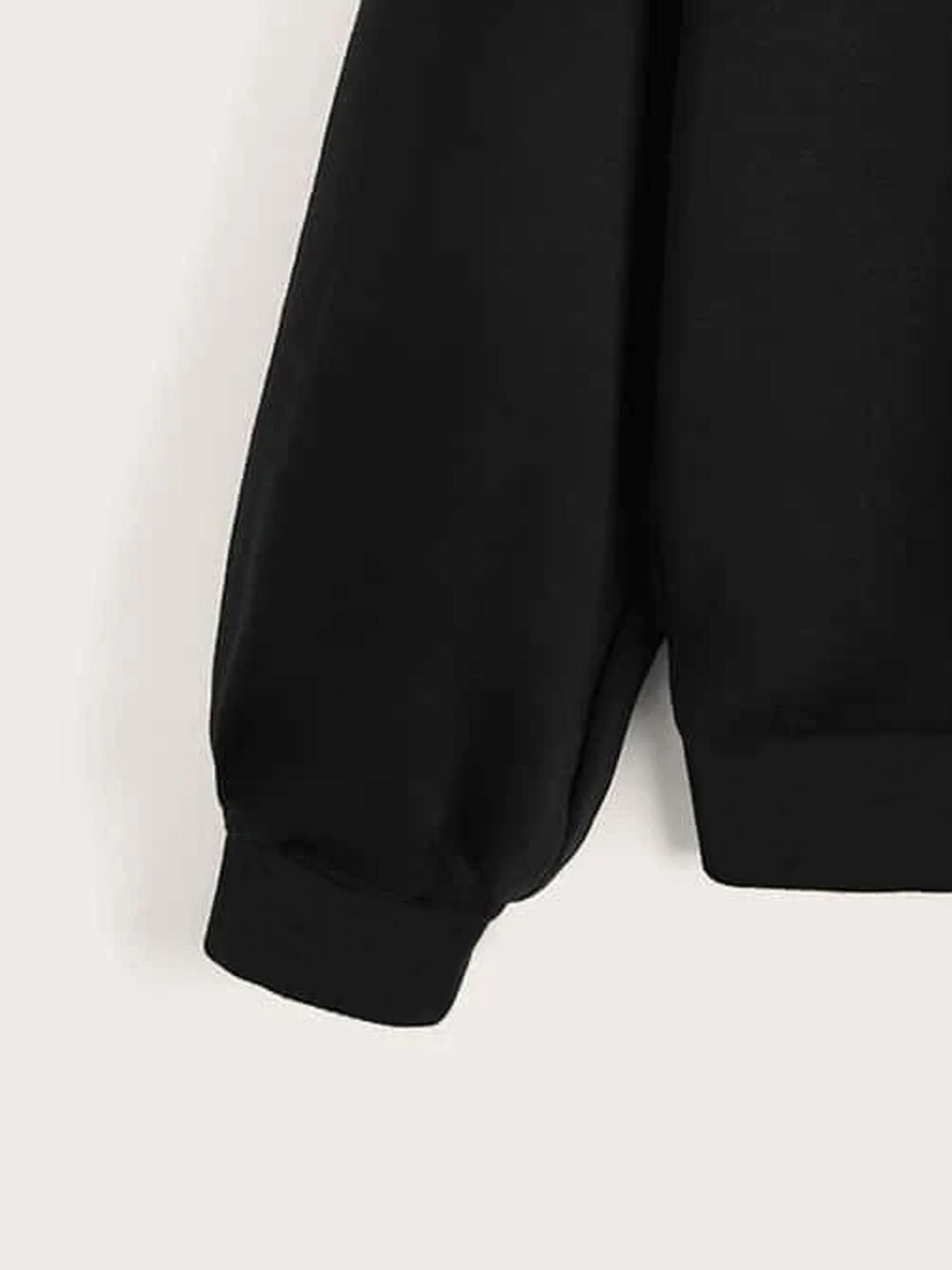 Black Round Neck Graphics Printed Long Sleeves Polyester Sweatshirt