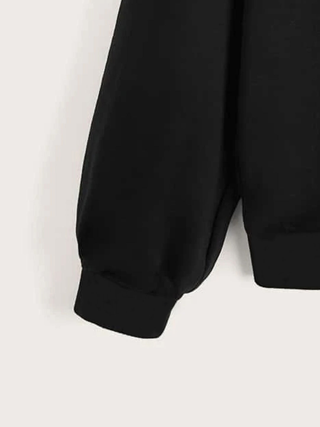 Black Round Neck Graphics Printed Long Sleeves Polyester Sweatshirt