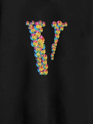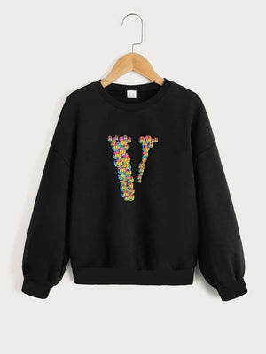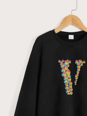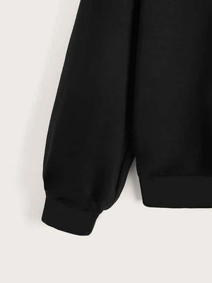 Black Round Neck Graphics Printed Long Sleeves Polyester Sweatshirt