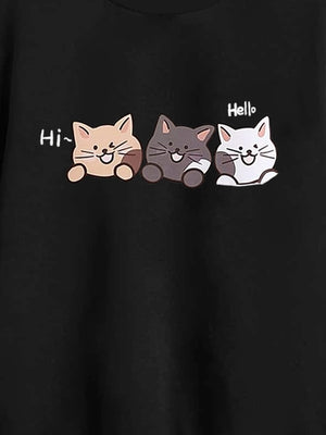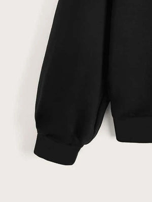 Black Round Neck Graphics Printed Long Sleeves Polyester Sweatshirt