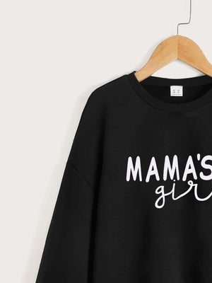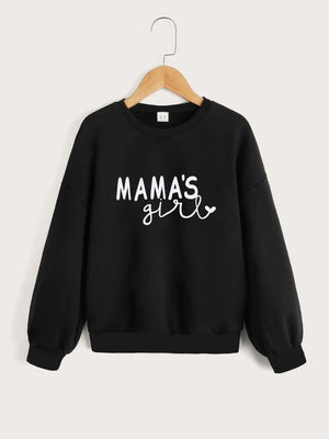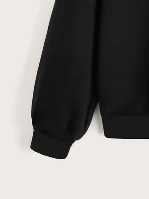 Black Round Neck Graphics Printed Long Sleeves Polyester Sweatshirt