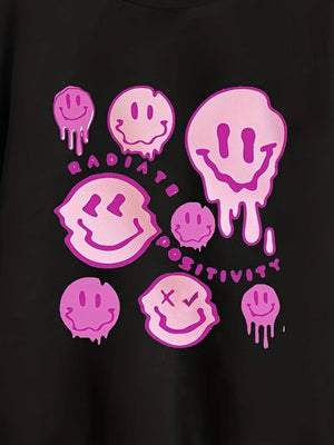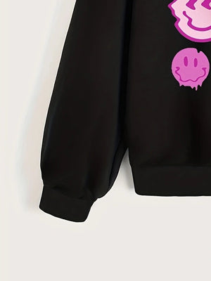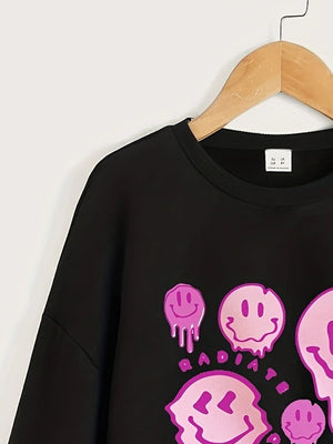 Black Round Neck Graphics Printed Long Sleeves Polyester Sweatshirt