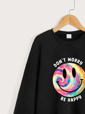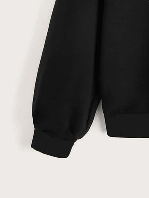 Black Round Neck Graphics Printed Long Sleeves Polyester Sweatshirt