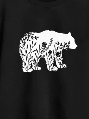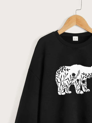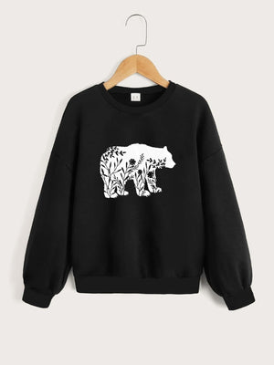 Black Round Neck Graphics Printed Long Sleeves Polyester Sweatshirt