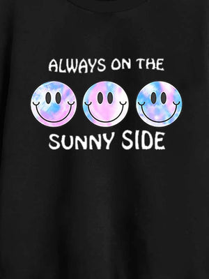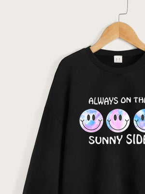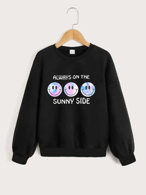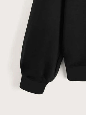 Black Round Neck Graphics Printed Long Sleeves Polyester Sweatshirt