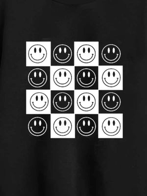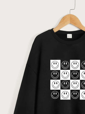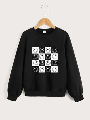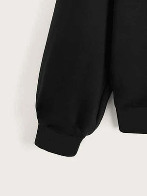Black Round Neck Graphics Printed Long Sleeves Polyester Sweatshirt