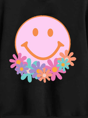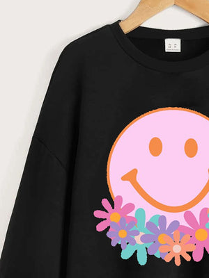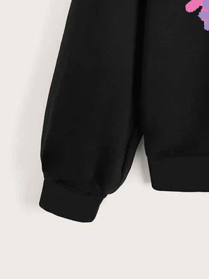 Black Round Neck Graphics Printed Long Sleeves Polyester Sweatshirt