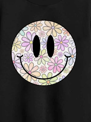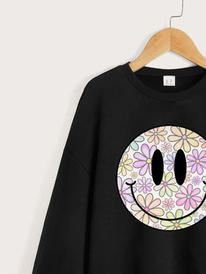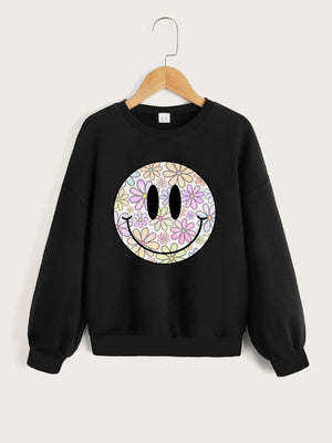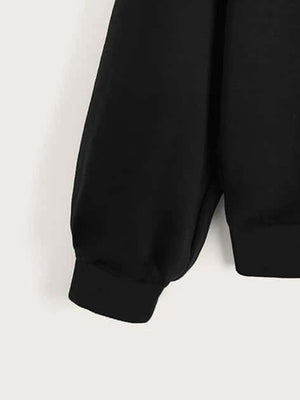 Black Round Neck Graphics Printed Long Sleeves Polyester Sweatshirt