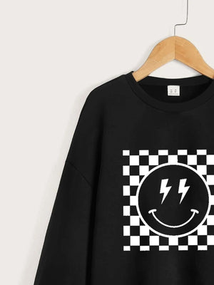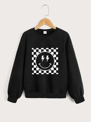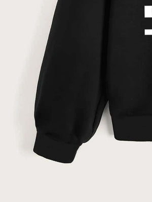 Black Round Neck Graphics Printed Long Sleeves Polyester Sweatshirt